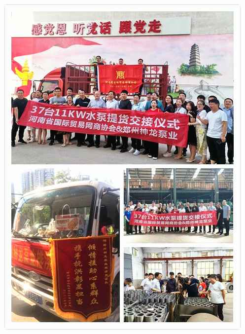 河南国际贸易网商协会、乐竟体育-乐竟online(中国)水泵提货交接,未来路街道赠神龙排涝突击队锦旗