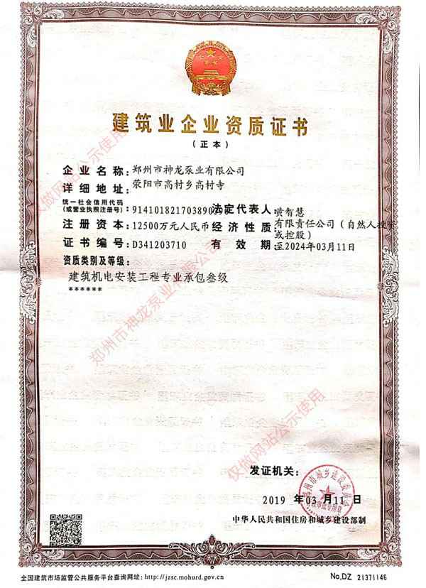 建筑业企业资质证书